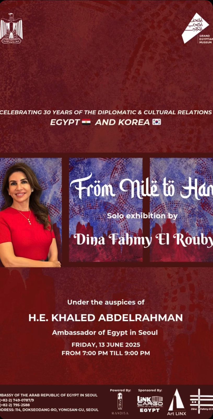 Art LINX’s Role: Art LINX curated the exhibition for the solo exhibition of the artist Dina Fahmy El Rouby to celebrate 30 years of diplomatic and cultural relations, under the auspices of H.E Ambassador Khaled Abdelrahman.